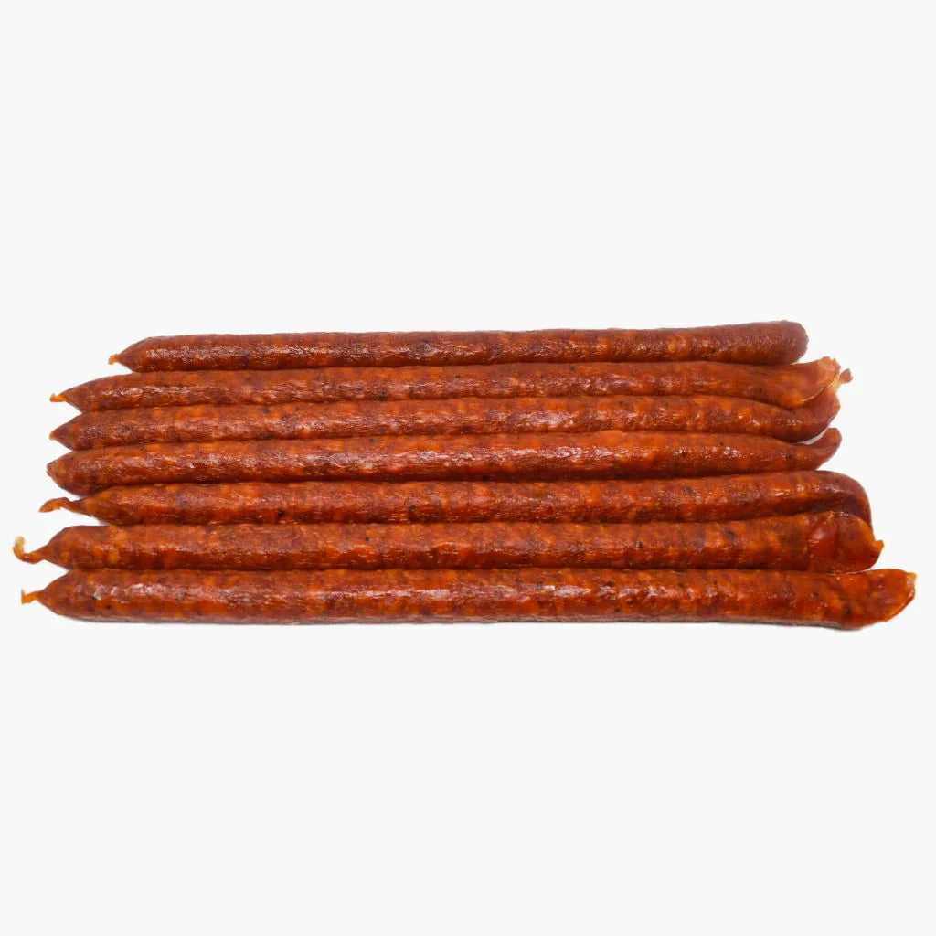 For those who like a little kick, Little VG's hot pepperettes bring the heat! These spicy, smoky snacks are great on their own, paired with a cold beverage, or added to charcuterie boards for an extra punch of flavour.