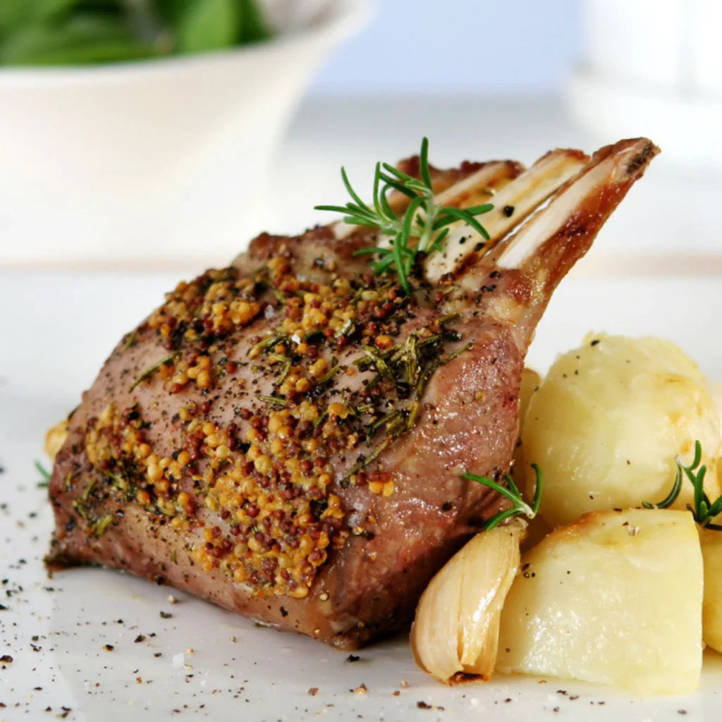 Sourced from locally raised lamb, this rack comes from farms that focus on ethical, regenerative grazing practices, ensuring high-quality meat with superior taste and tenderness.