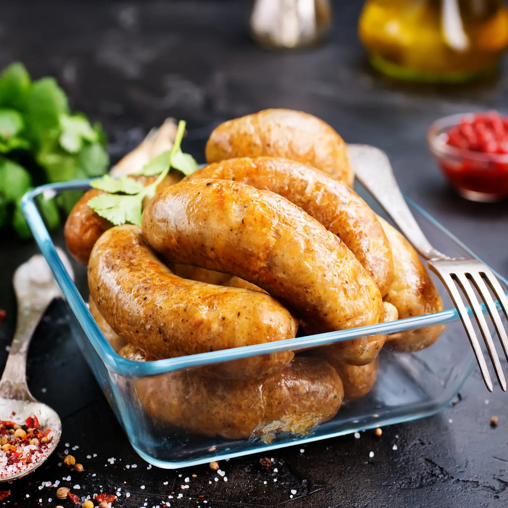 With a savoury, slightly sweet flavour and a juicy bite, these sundried tomato chicken sausages are perfect for pasta, sandwiches, or simply enjoying on the grill.